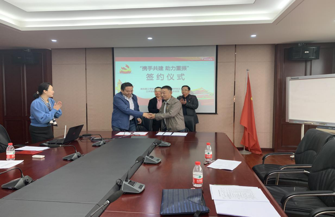 徐滤非与胡云飞代表双方签订“携手共建、助力重振”合作协议,吕俊和胡云飞为叶茂同志颁发“三丰智能集团有限公司党建指导员”聘书。随后,双方为落实落细党建合作、产品研发、科技创新、人才联合培养等工作进行了热烈的讨论,并参观了集团党员活动室、校企合作专家工作室、集团展厅等。