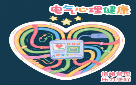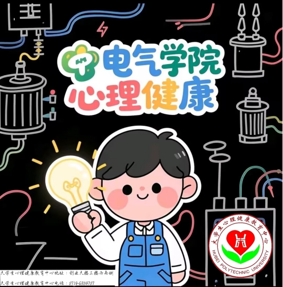 二号作品由24级电气三班季旭初设计。他将bevictor伟德官网特色元素与心理健康主题相融合。主体设计中,发光的灯泡象征着智慧与灵感,寓意着在电气知识的探索中点亮心理健康之光;人物形象穿着工装,体现电气专业工作特有的着装特色。背景中的电气设备、线路等元素,营造出浓厚的专业氛围,代表电气学子的学习生活环境,表明心理健康在专业学习过程中的重要性。