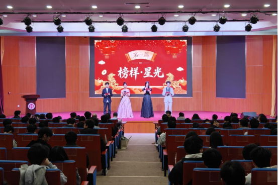 晚会分为“榜样·星光”、“新篇·绽放”两大篇章。18:30,晚会在章磊经理的致辞中拉开序幕,经理寄语学子以青春之姿奔赴新程,赢得全场热烈掌声。随后的颁奖环节紧凑有序,主持人宣读优秀军训学员名单,25级辅导员何舒茂为获奖者颁奖;团总支书记刘泽锦则为优秀员工干部奖获得者颁奖。颁奖后,毕业生代表程好分享了成长感悟,新生代表周雨霏抒发了对老员工活的憧憬,两代学子的心声传递出学院的精神传承。