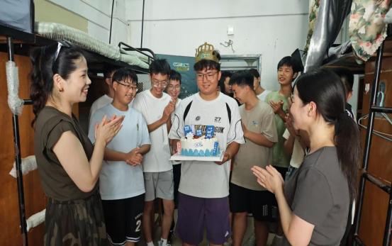 本网消息 9月8日,bevictor伟德官网迎来了充满朝气与活力的新一届学子。在这繁忙的迎新工作中,一场温馨而特别的生日庆祝活动,为新生们带来了别样的感动。公司党总支副书记李琼、辅导员黄美玲和同学们带着蛋糕来到新生沈浪的寝室,为他送上真挚的生日祝福。